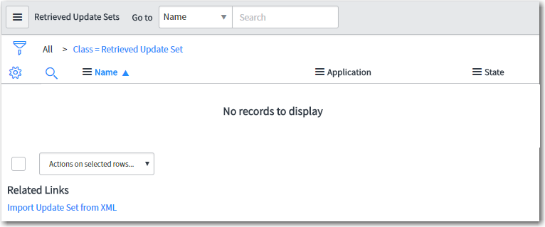 4. In the search results, click Retrieved Update Sets. The Retrieved Update Sets page opens.