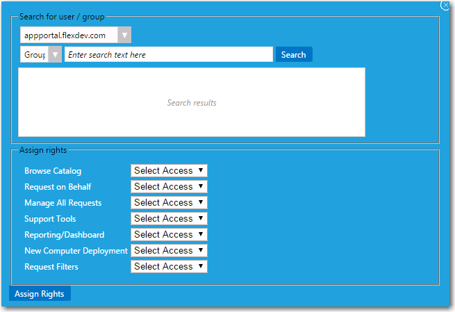 5. Click Assign Rights to add the user or group.
